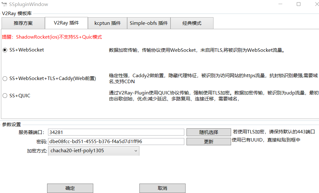 2、加密方式:chacha20-ietf 协议:auth_chain_a 混淆:plain