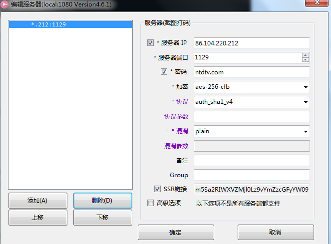 有了账号后,打开SSR客户端,填上信息,这里以windows版的SSR客户端为例子: